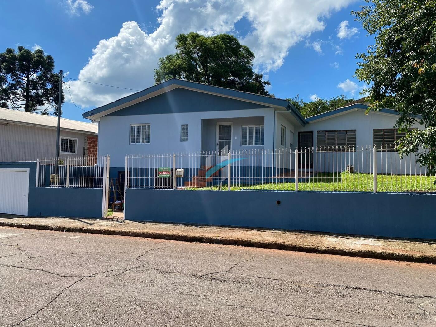 Possui três dormitórios, sala de estar e jantar, duas cozinhas, churrasqueira, área de serviço, despensa, porão, duas vagas de garagem, terreno de 628m² de área total.